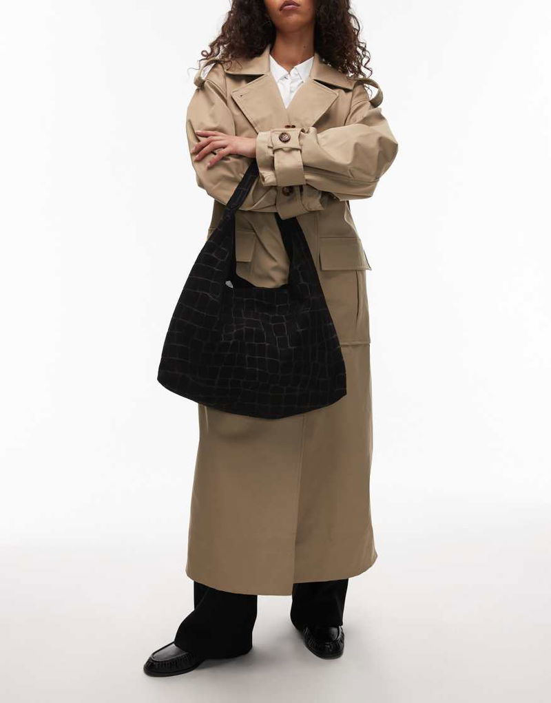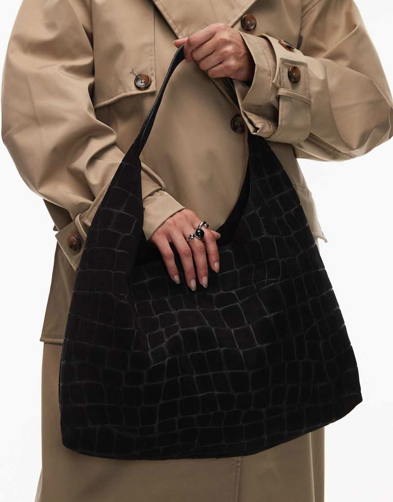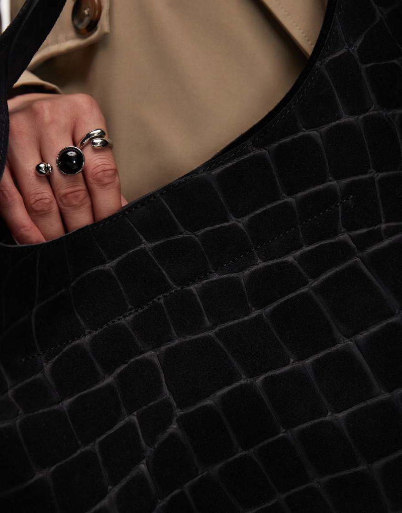 Large Croco Suede Tote In Black