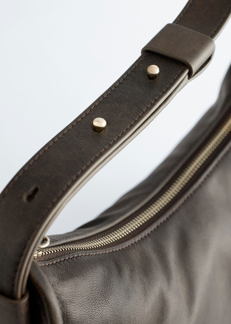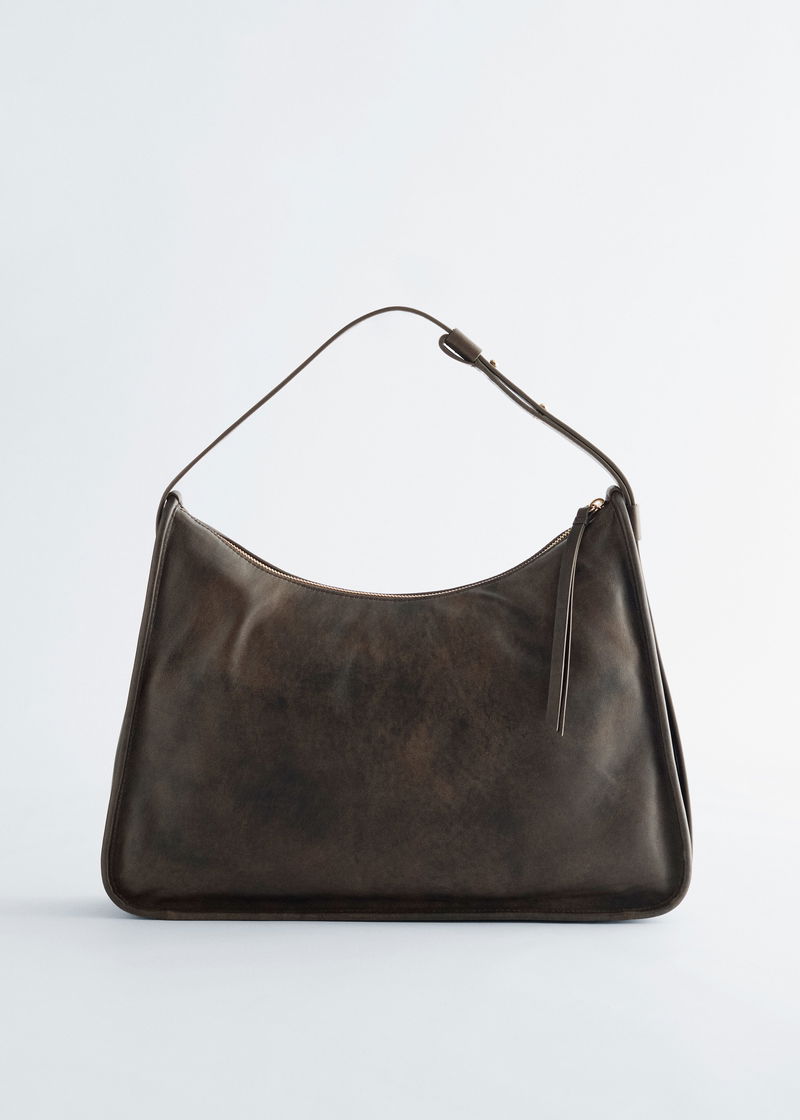 Crafted in India from supple leather, this low-line tote bag features angular edges with a subtle trim. With a zip, adjustable shoulder strap, and a zipped inner pocket, it’s ideal for carrying everyday essentials.