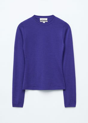 This top is crafted from 100% wool in a thin jersey fabric. Cut in a slim silhouette, it features a round neckline, long sleeves, and is accented by lettuce-edge trims at the cuffs and hem.