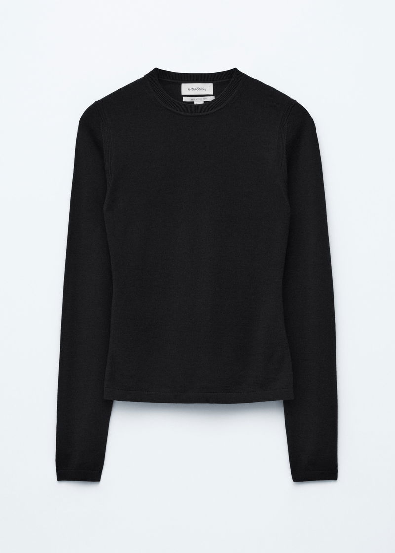 Knitted from pure wool, this long-sleeve top is cut in a slim silhouette with a round neck and ribbed trims.