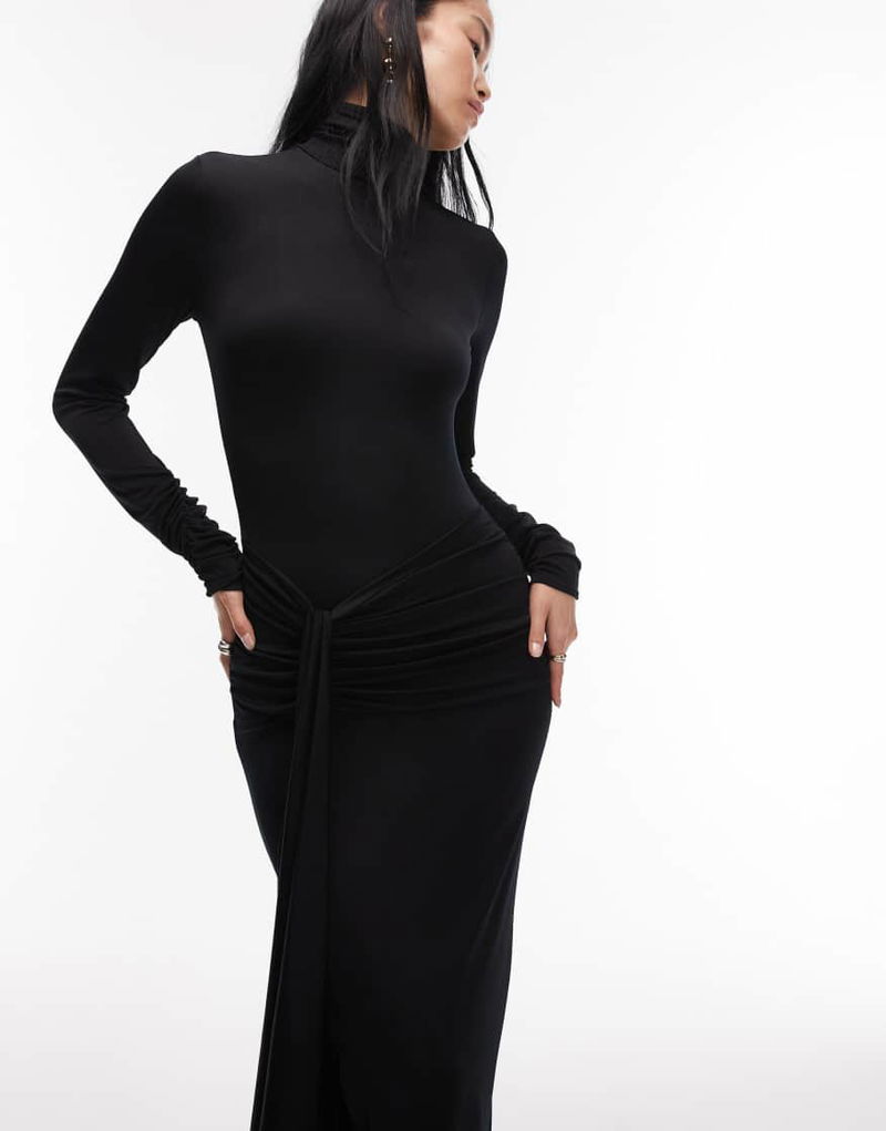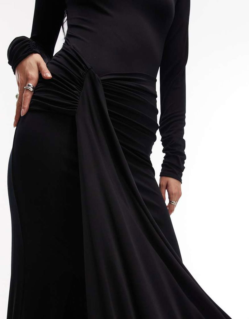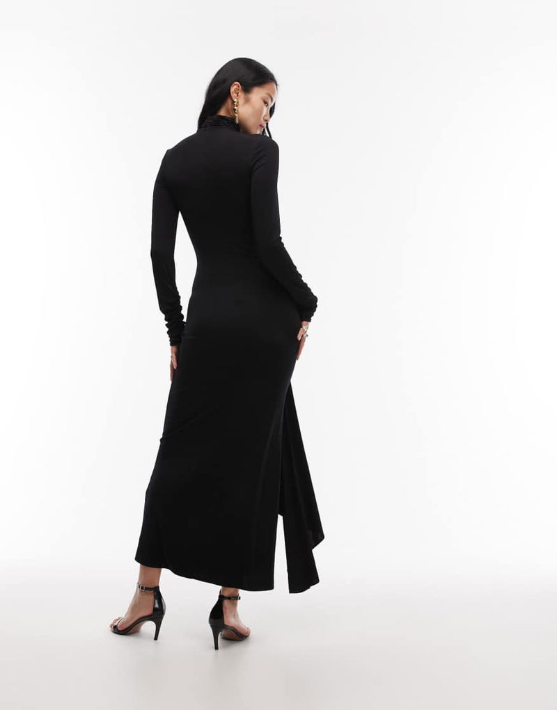 Maxi Dress With High Neck And Drape Sheaf Detail In Black