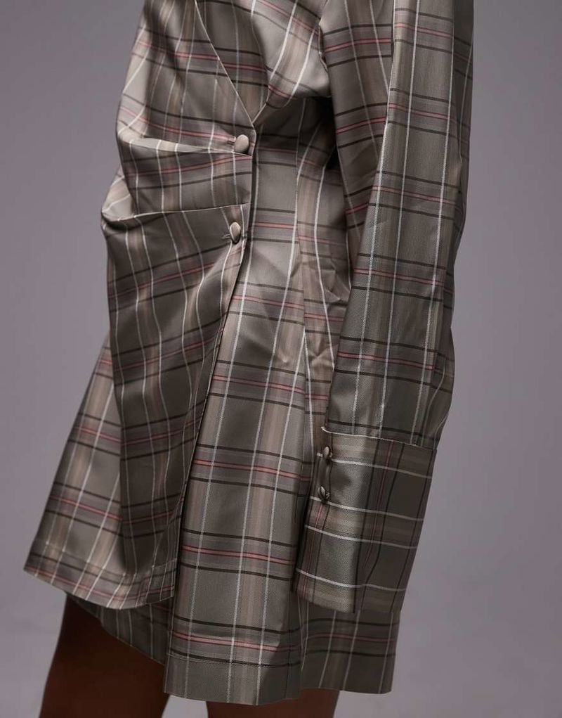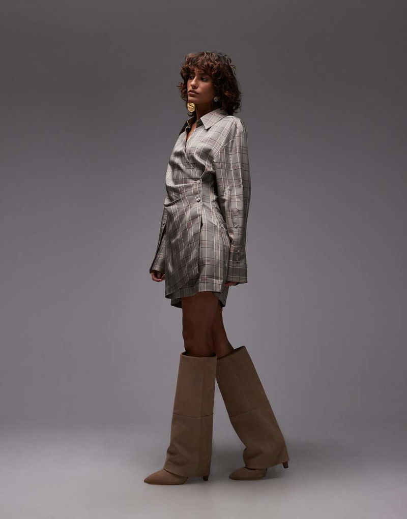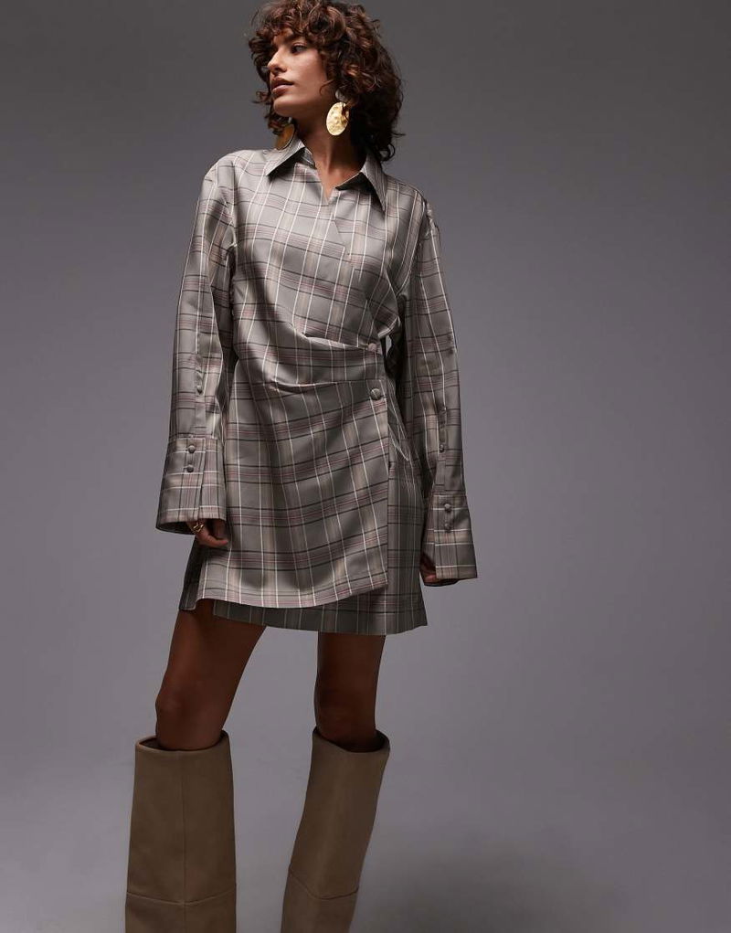 Mini Shirt Dress With Ruche Wrap Front In Grey Stripe