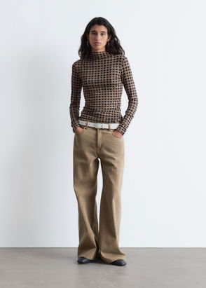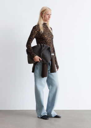 Printed long-sleeve mock-neck top finished with a slim silhouette.