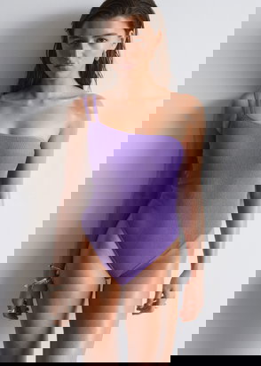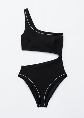 One Shoulder Swimsuit With Cut Out In Black