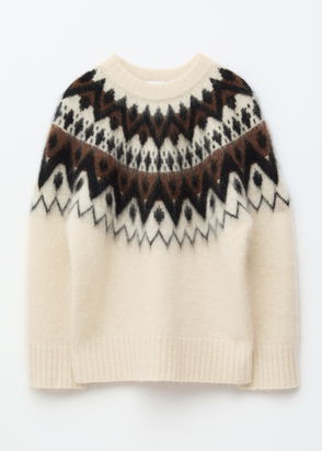 This sweater is knitted from a merino wool and mohair blend, offering a soft, brushed finish. Cut in a long, oversized silhouette, it features a round neckline, long sleeves, and finely ribbed trims.