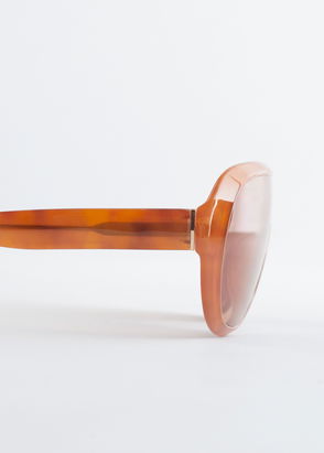 They’re fitted with tonal lenses and complemented by wide, low-set temples to amplify the exaggerated silhouette.