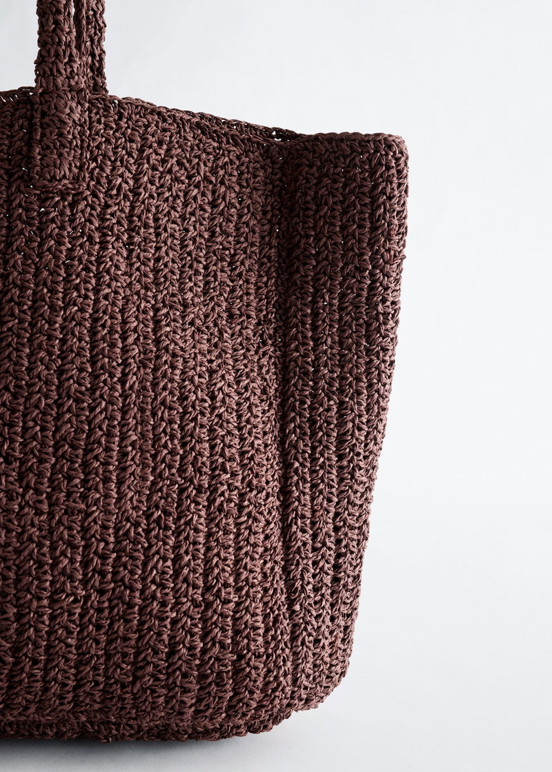 Woven from paper straw, this unlined tote offers a relaxed shape. It features shoulder straps, with a patch pocket and a leather card holder inside.