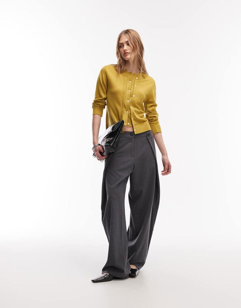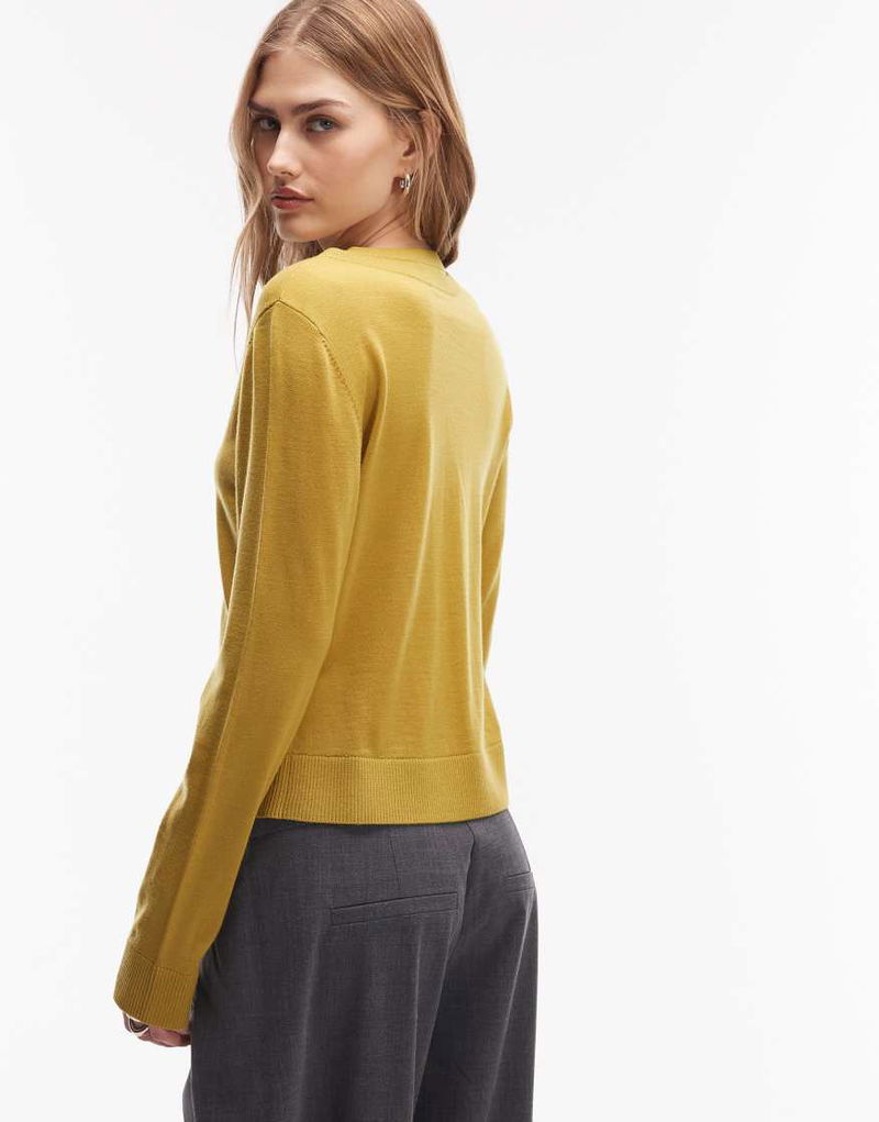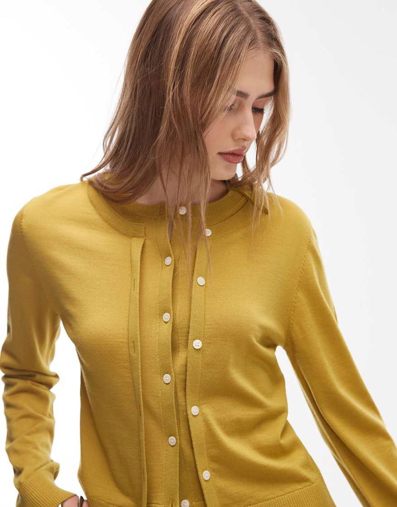 Pure Wool Double Up Cardigan In Mustard Yellow