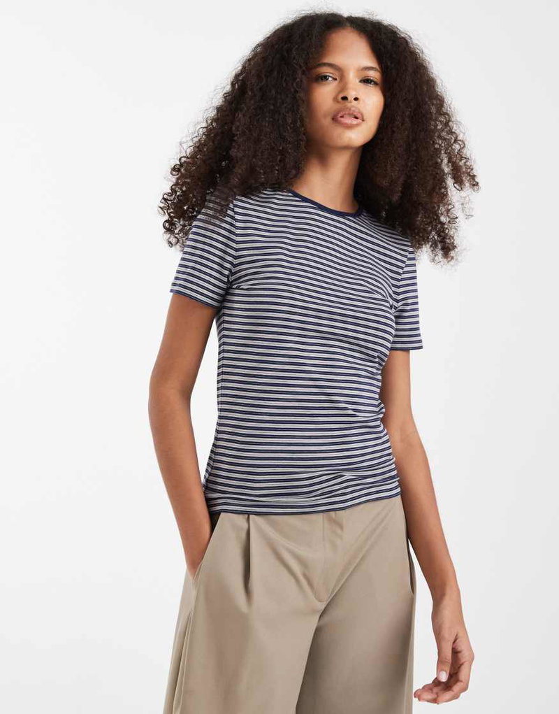 Relaxed Short Sleeve T-shirt In Navy Stripe
