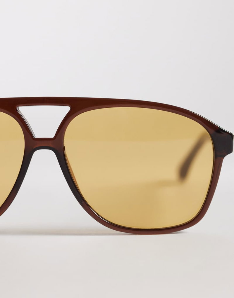 Retro Aviator Sunglasses In Dark Yellow Tint With Linen Pouch Case