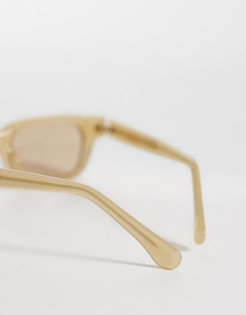 Retro Rectangle Sunglasses In Light Yellow With Linen Pouch Case
