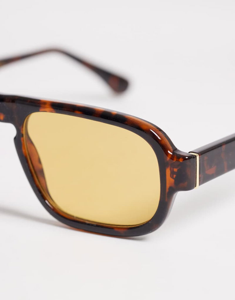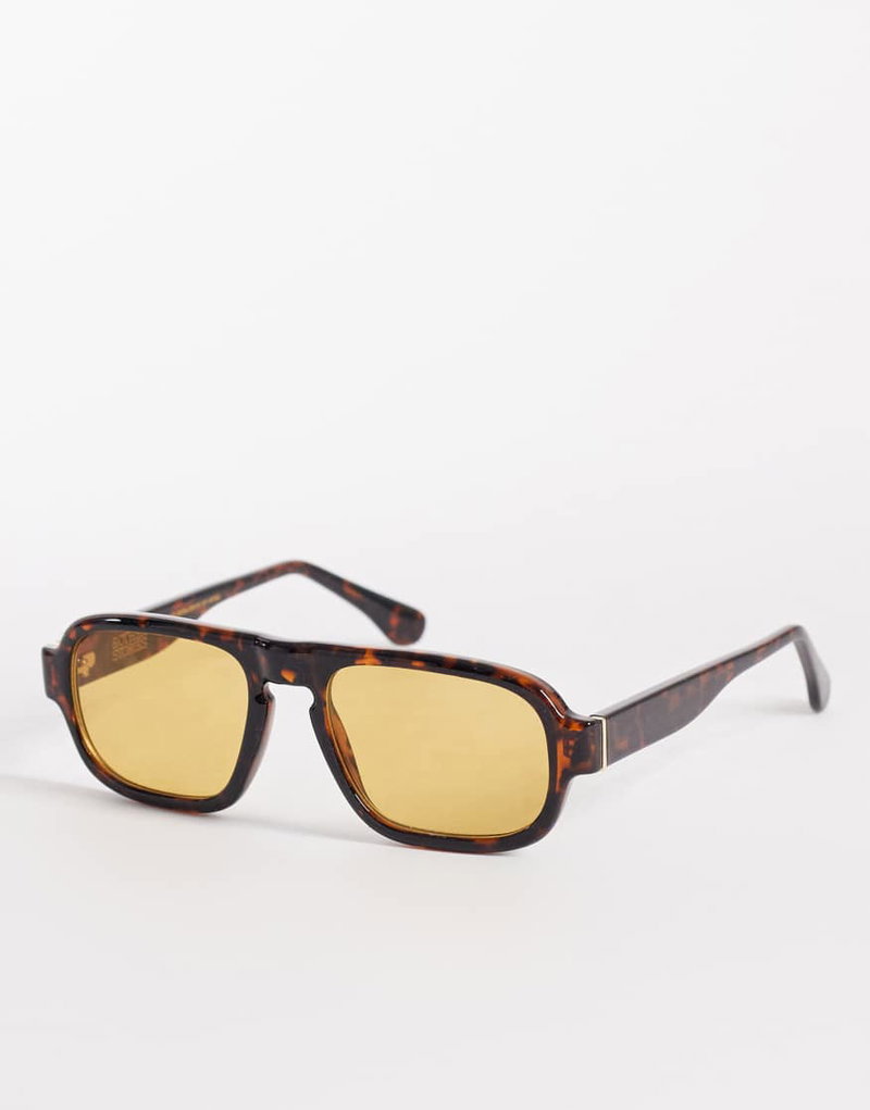 Retro Square Sunglasses In Brown Tortoise With Linen Pouch Case