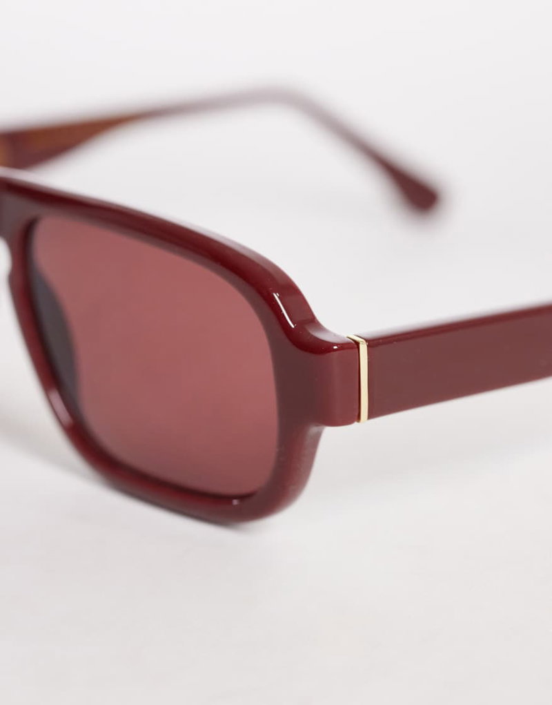 Retro Square Sunglasses In Red With Linen Pouch Case