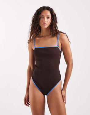 Ribbed U-front One-piece Swimsuit In Black