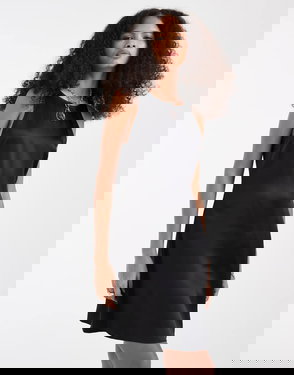 Channeling ‘90s minimalism, this mini slip dress is cut from lustrous satin for a fluid, lightweight feel. It features wide shoulder straps and a scoop neckline and back.