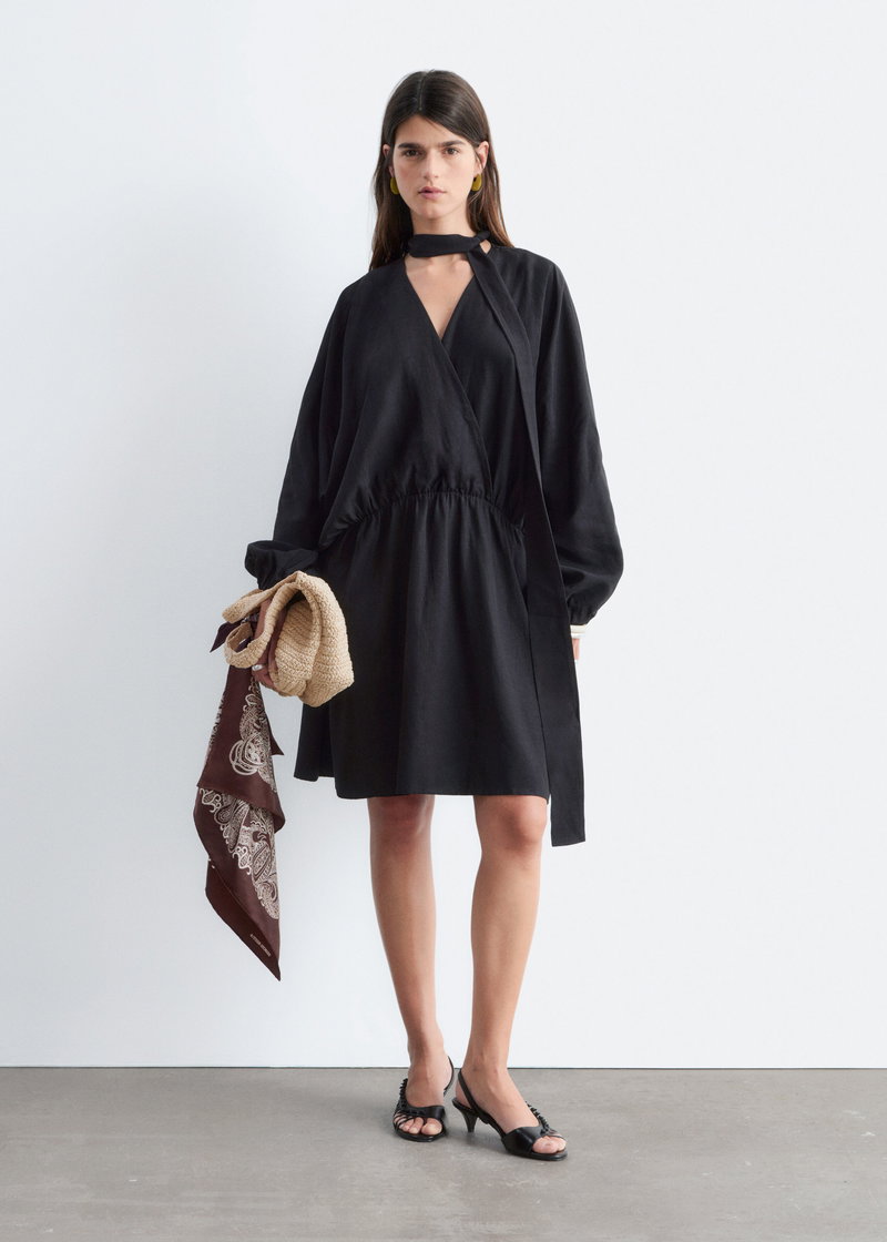 Scarf-Detail Wrap Mini Dress