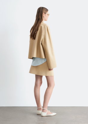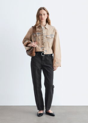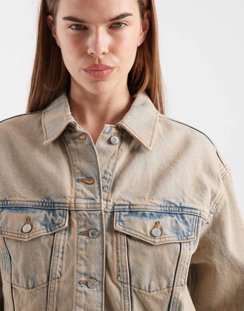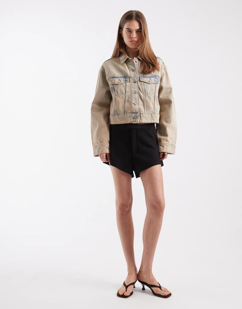 Short Denim Jacket In Beige Overdye