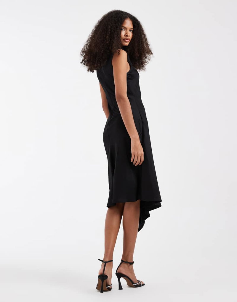Sleeveless Satin Dress With Asymmetric Hem In Black