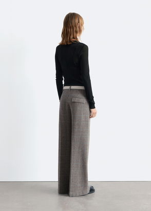 Tailored straight-leg trousers with press creases and duo slanted pockets. Featuring an elastic waistband, belt loops, and a single decorative flap pocket on the side.