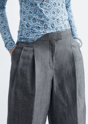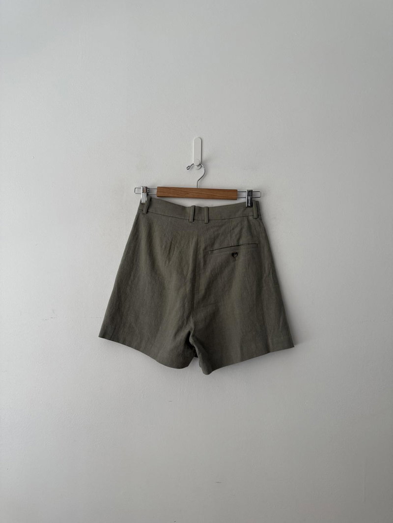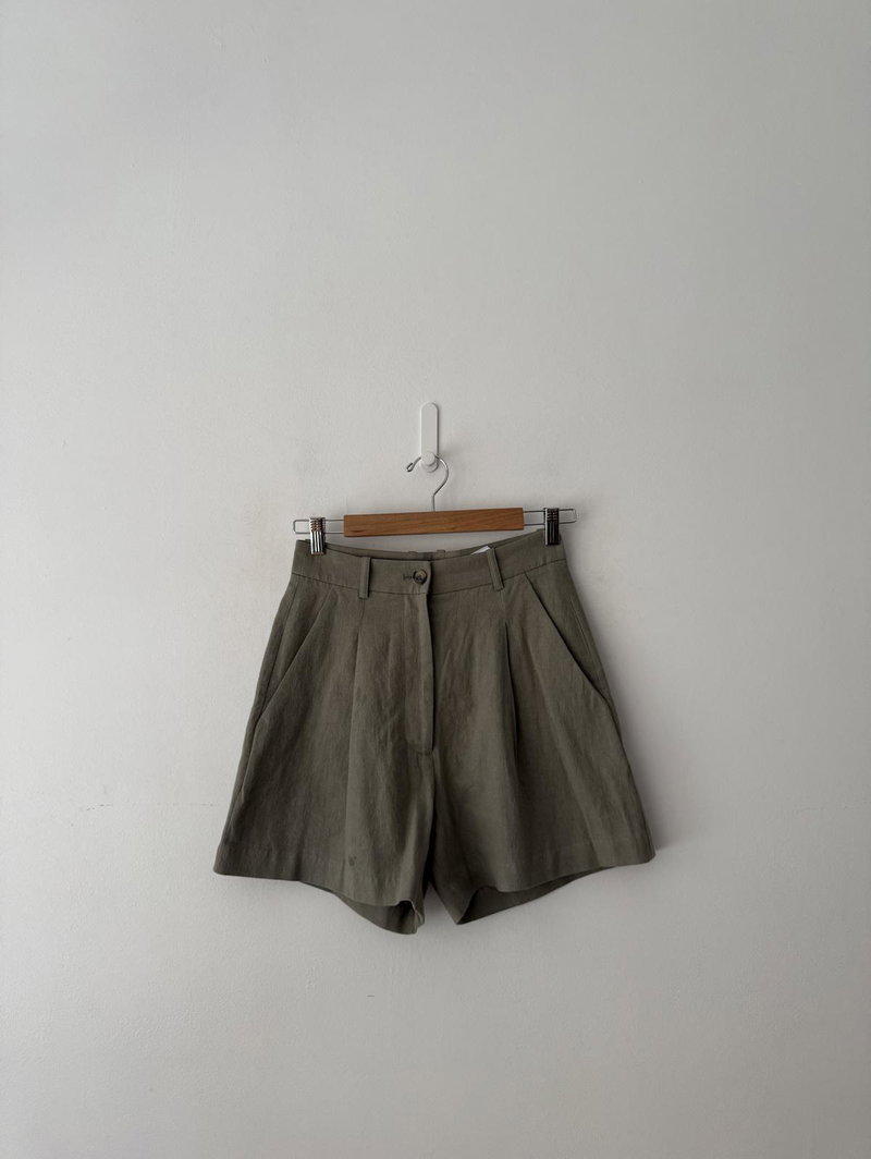 Tailored wide-leg linen shorts cut with sharp pleats, folded hemline and wide leg. Finished with slanted pockets and a zip fly with hook and bar closure and belt loops.
