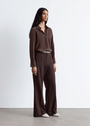 Long-sleeve shirt featuring a textured finish. Detailed with a thin spaghetti belt and side slits. Turn-down collar Seven button closures. Buttoned cuffs.