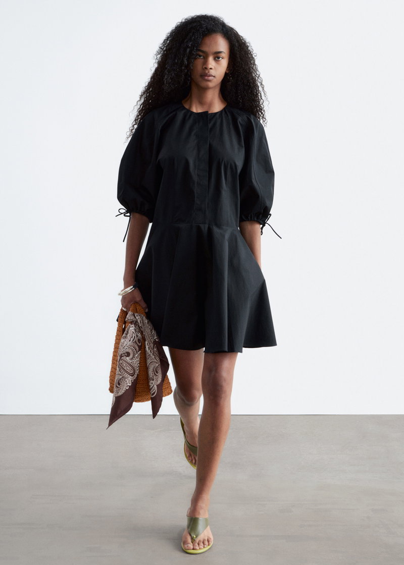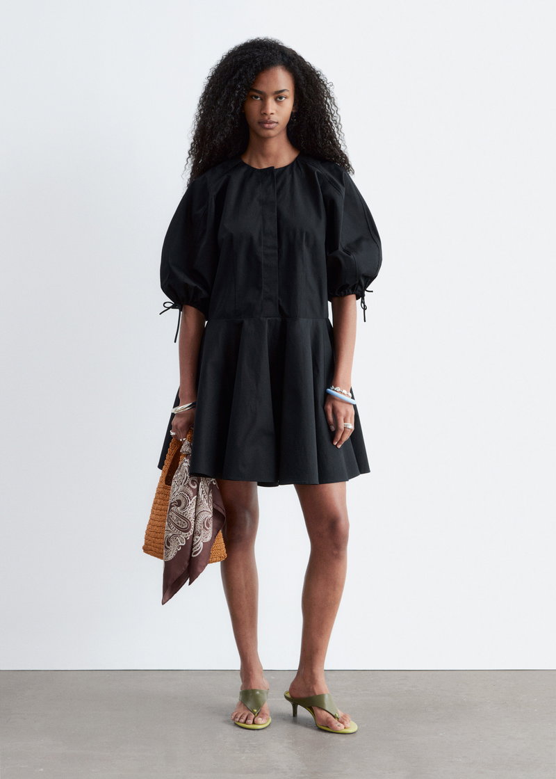 Crafted from cotton twill, this mini dress is cut in a relaxed silhouette and defined by voluminous sleeves with drawstring cuffs for adjustable shape.