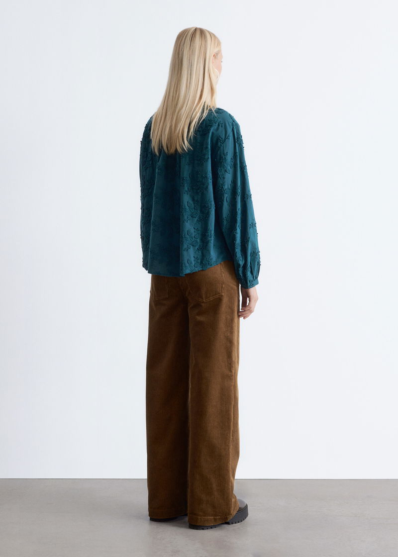 Voluminous Floral-Appliqué Blouse