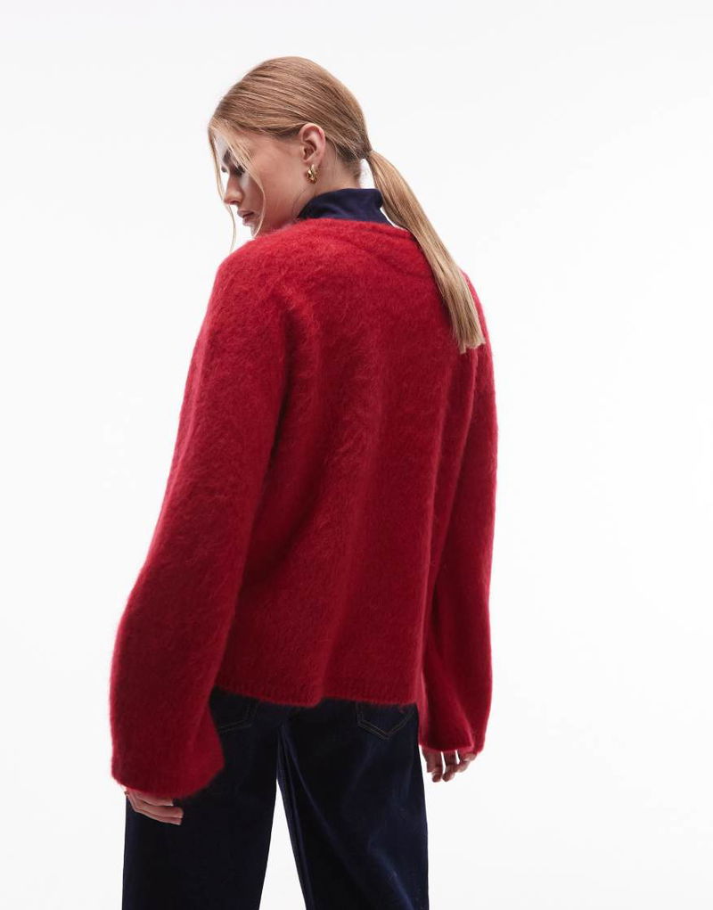 Wool And Mohair Blend Drop Shoulder Jumper In Bright Red