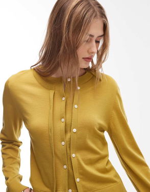 Wool Blend Cardigan With Cinched Waist And Volume Sleeves In Beige