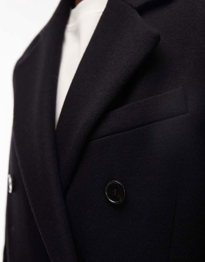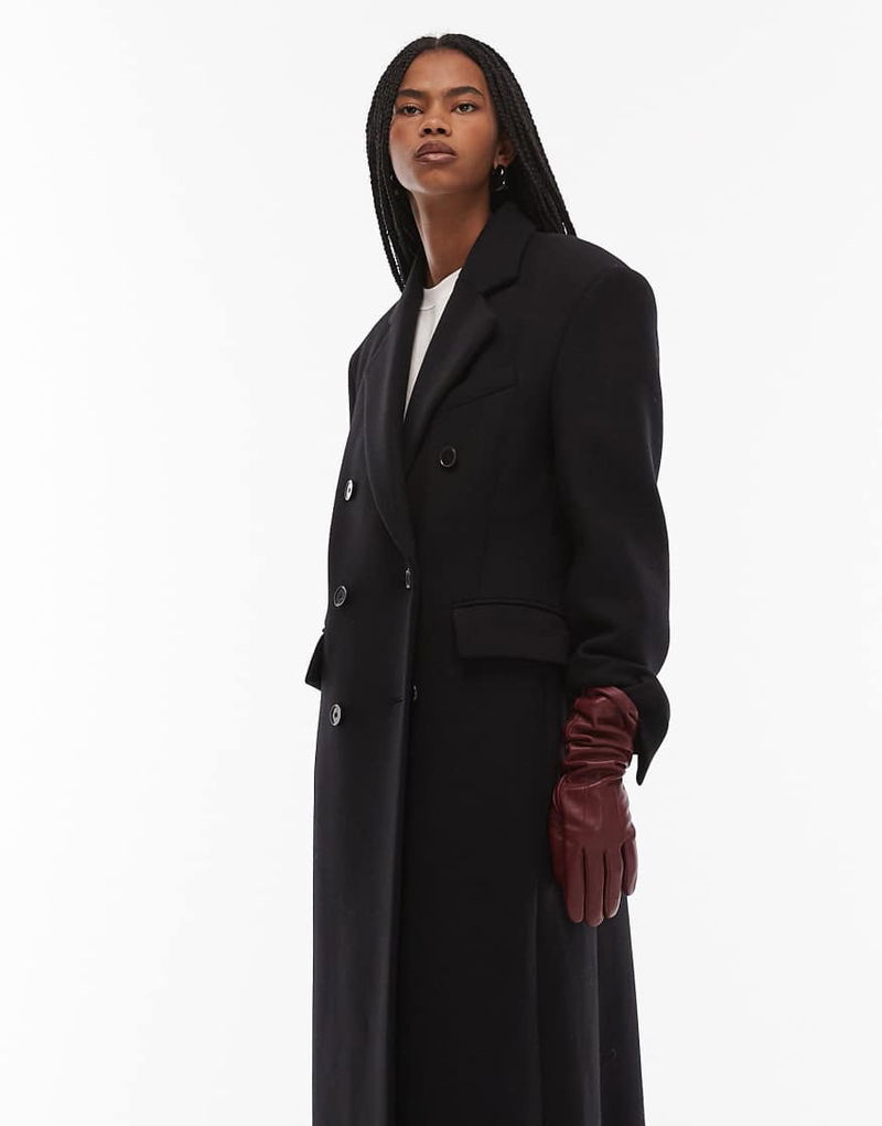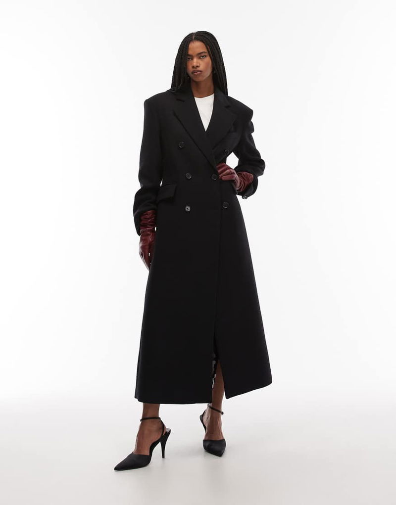 Wool Double Breasted Maxi Coat With Bold Shoulder Details In Black