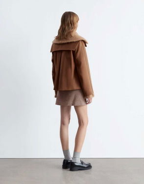 Wool Mock Neck Short Jacket In Black
