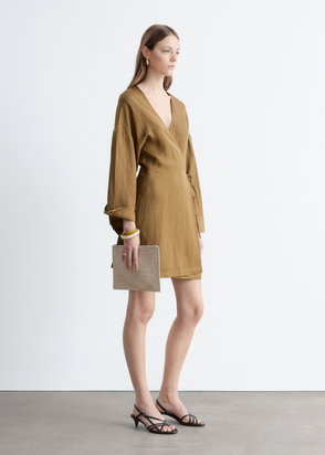 A nod to utility codes, this mini dress is crafted from rigid twill and cut in a classic wrapover silhouette that defines the waist.