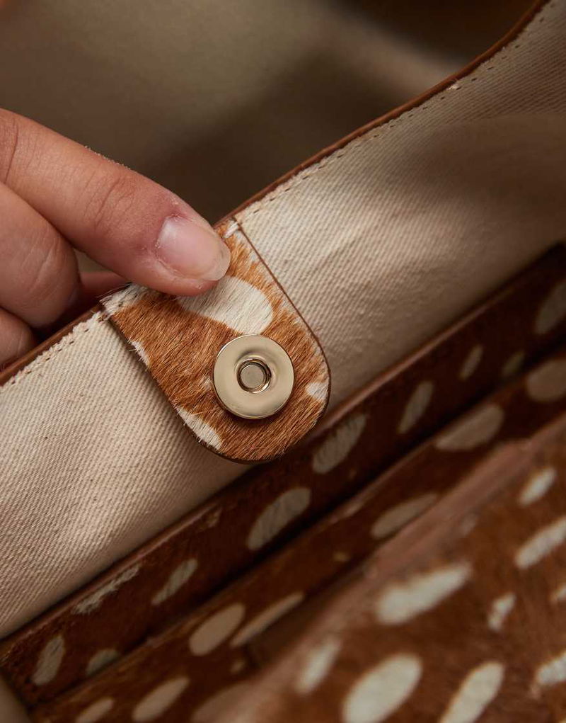 Xtra Small Hairy Leather Suede Tote In Brown Bambi Deer Print