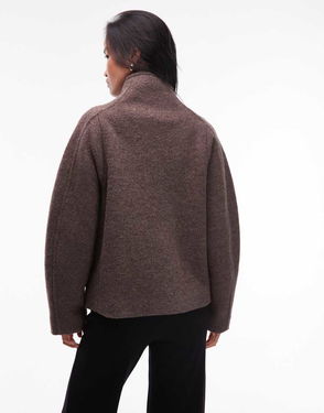 Zip Front Bomber Jacket With Padded Collar In Dark Brown