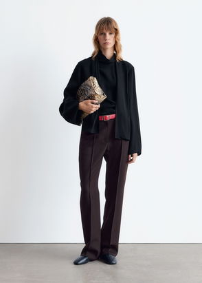 Another Tomorrow's blouse is a masterclass in easy elegance. Made from lustrous satin, it's cut for a loose fit and has a scarf-inspired panel that drapes languidly over your frame. Wear yours with a slip skirt or tailored pants.
