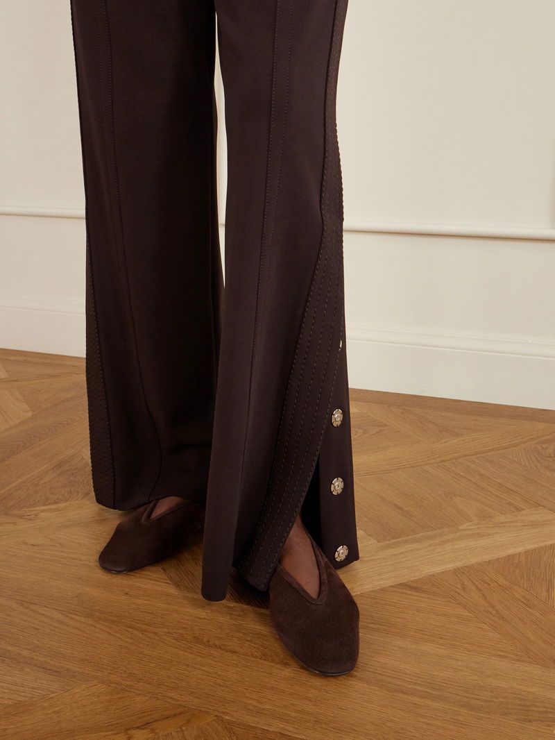 Another Tomorrow's track pants are made from stretch-jersey with a smooth, fluid handle. Traced with topstitched stripes, they have relaxed straight legs that can be adjusted with silver-tone snaps along the cuffs.