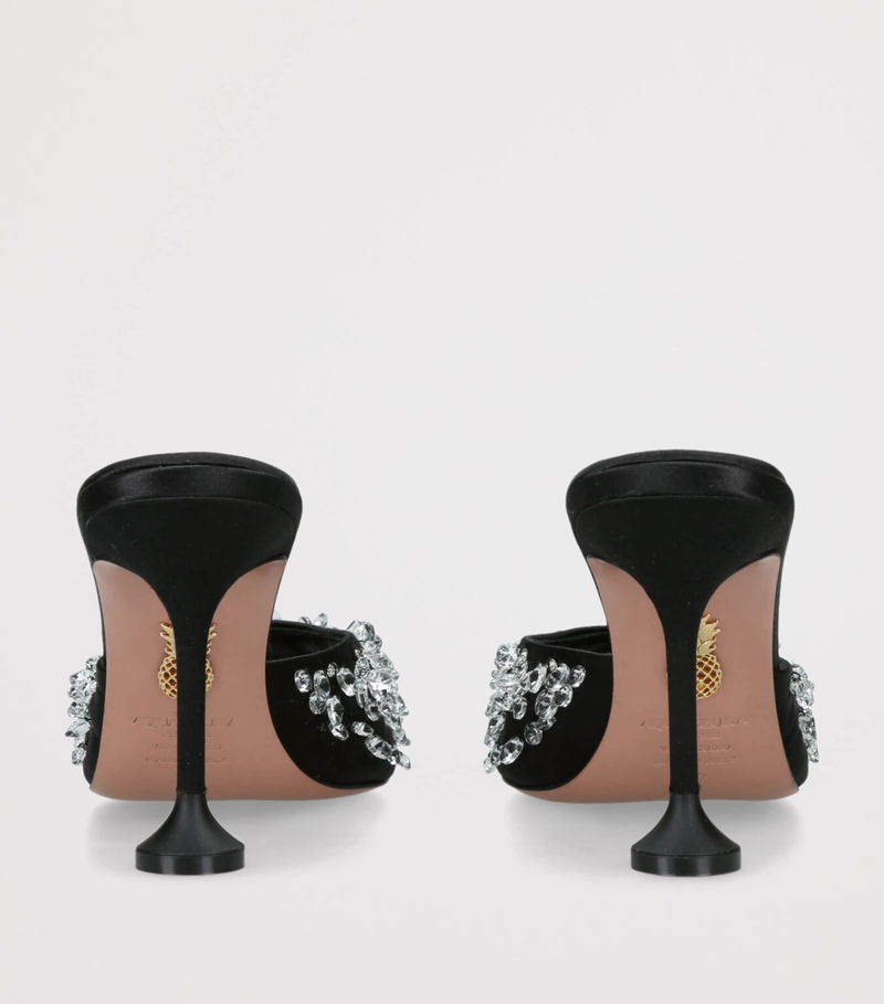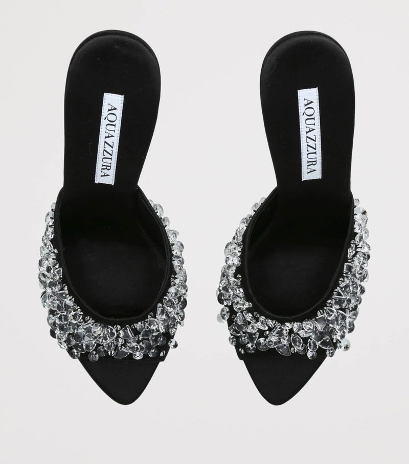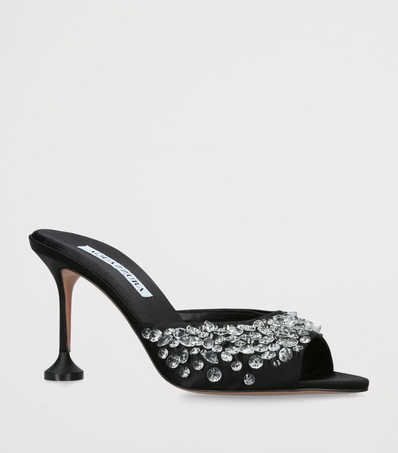 Thoughtful silhouettes abound in the presence of Aquazzura footwear, and this pair of Bisous mules is no exception. Graced by Italian craftsmanship, its field of crystals offers a charming contrast against the design’s dark hue. Perched at a height of 85mm, the heels finish in an elegant flare.