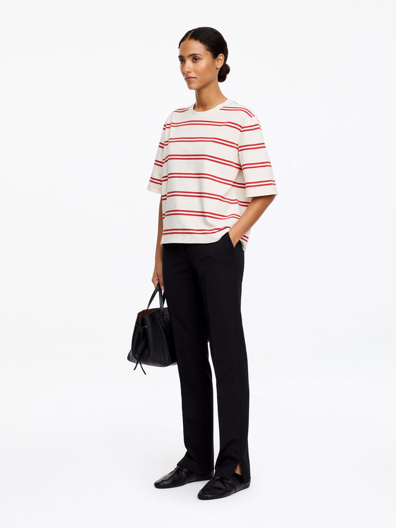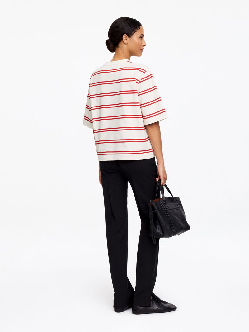 A cherished staple T-shirt from our signature jersey collection, ALBA is made from a heavier cotton that gently holds its shape. This casual style features a boxy fit with dropped shoulders, extended short sleeves and a slightly cropped length. 250 GSM. Relaxed fit.