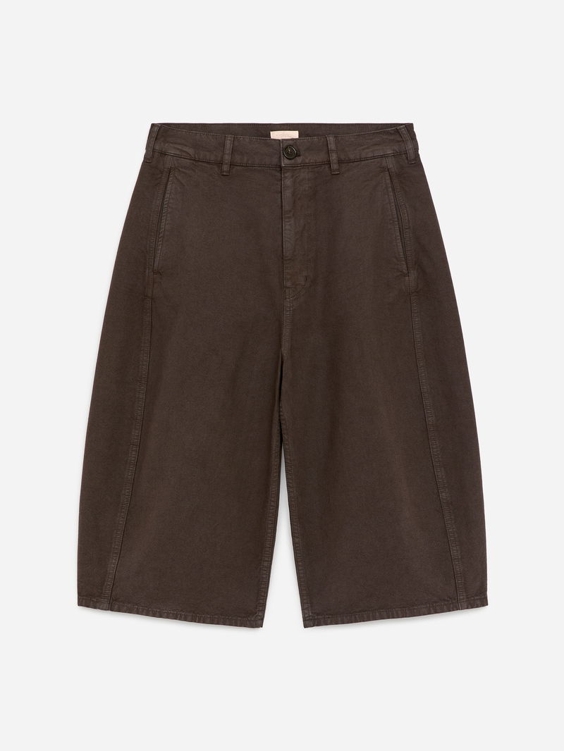 A considered play on proportion, these three-quarter-length canvas shorts are shaped with a barrel silhouette and cut to fall at the knee. Designed with side-seam pockets, a zip fly and button closure, and finished with a double welt pocket at the back. Crafted from cotton.