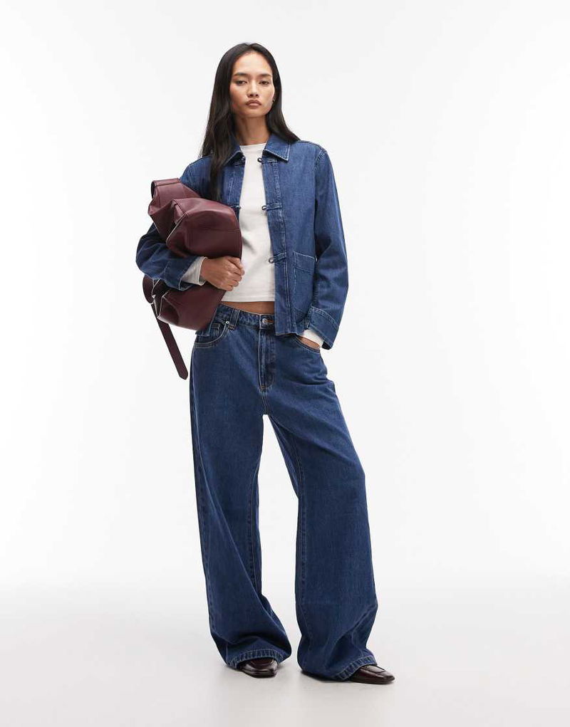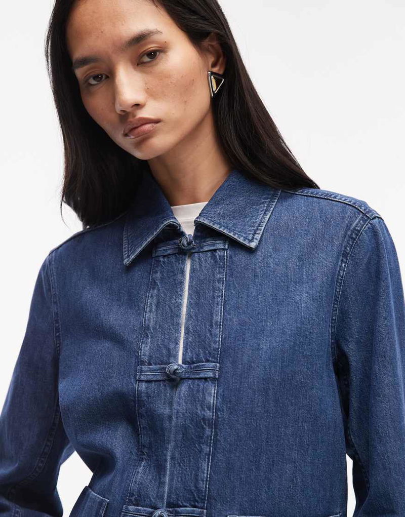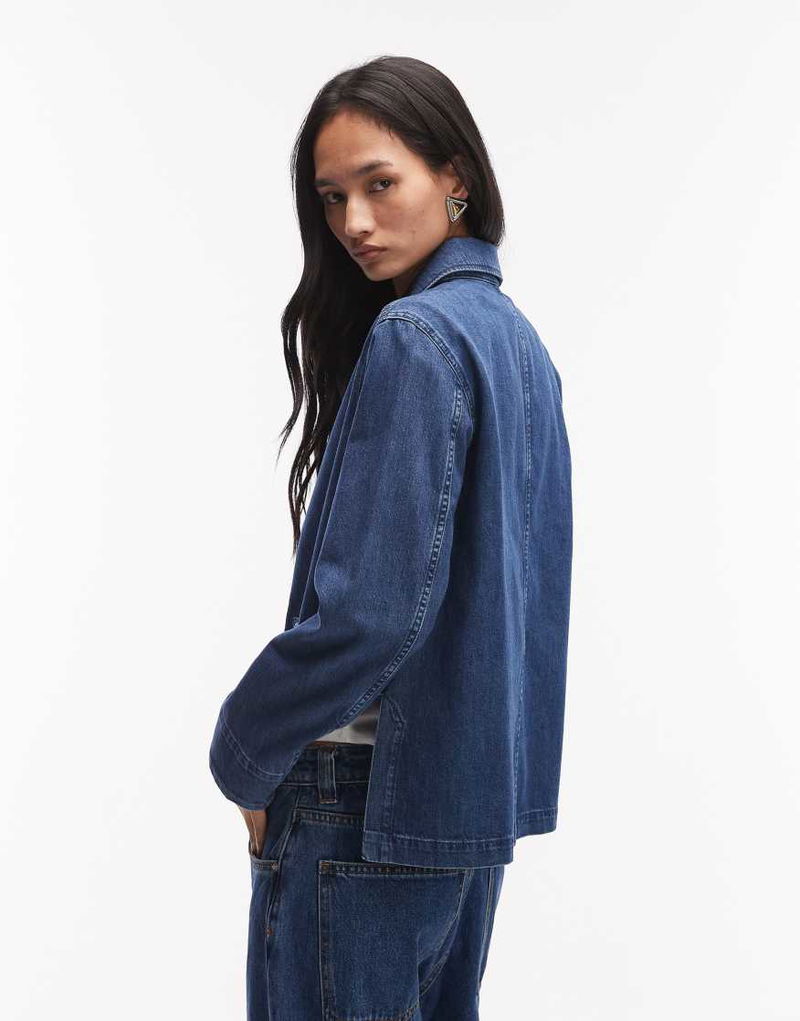 Clean Utility Denim Overshirt In Dark Blue Wash