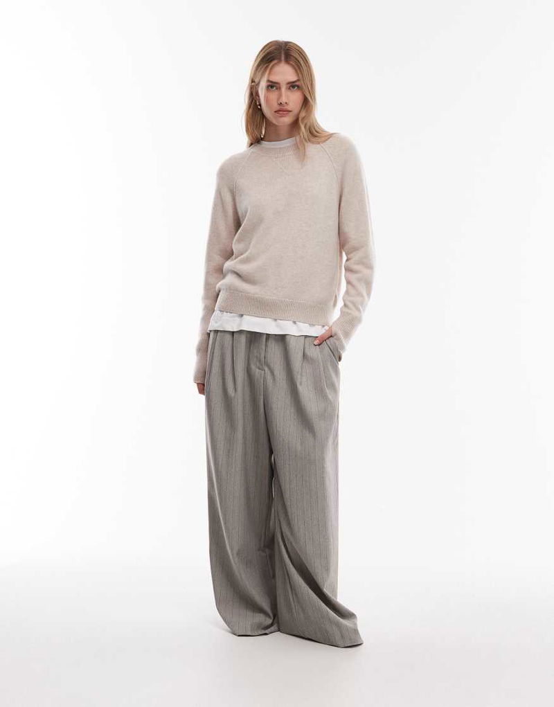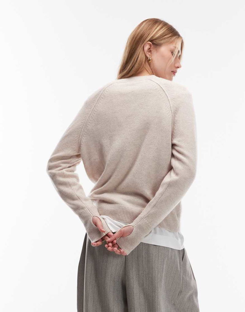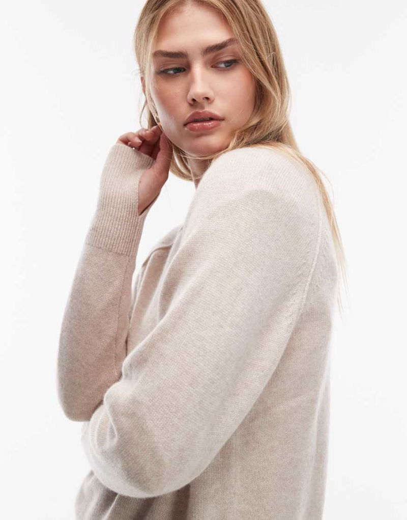 Co-ord Pure Cashmere Knitted Sweater In Beige Melange