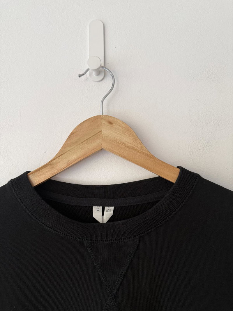 Oversized, 100% cotton, black crew neck sweatshirt.