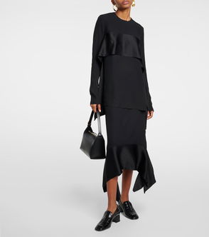 A mid-length style featuring a waistband with gatherings and a slit at centre back.