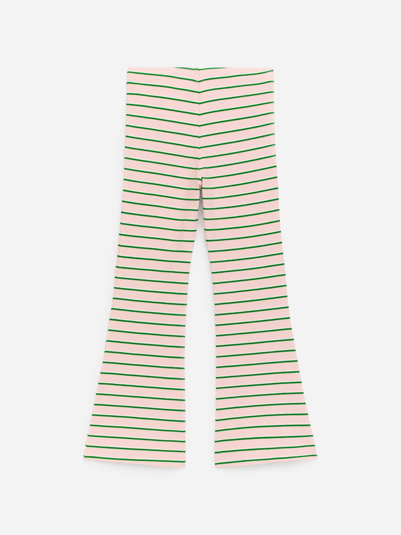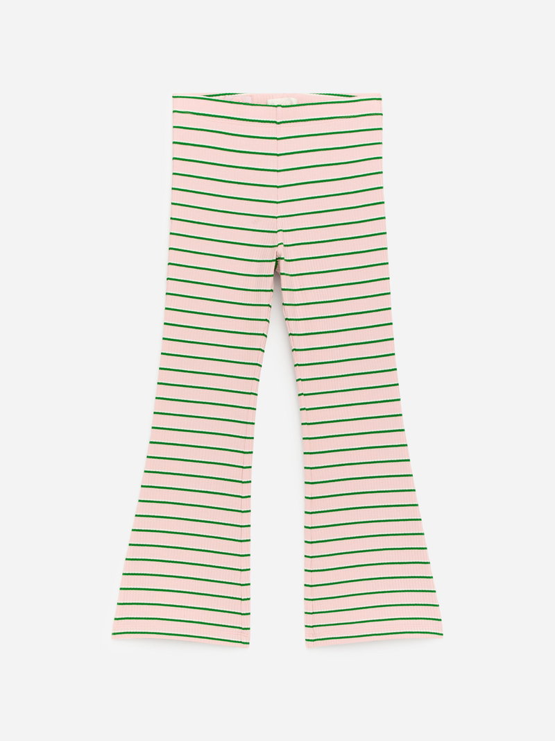 Ribbed leggings with flared legs crafted from cotton with a hint of elastane for stretch. Adjustable elastics at waist.