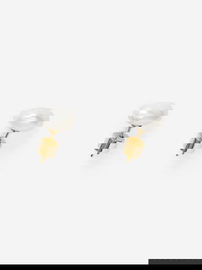 Oval earrings crafted from gold-plated brass. Pin and clip-on closure.