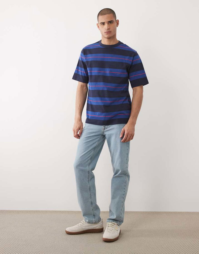 Heavyweight Jersey Oversized T-shirt In Blue Stripe