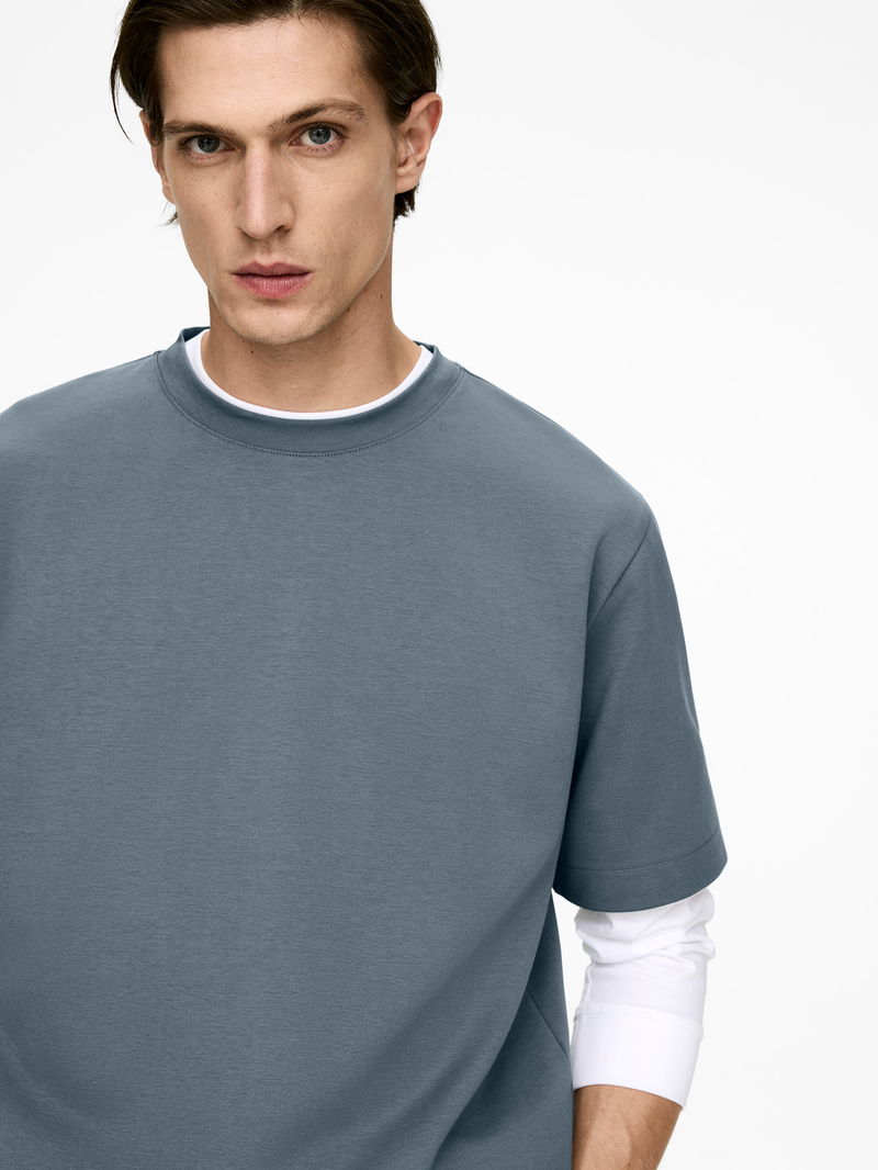 Crafted from a heavyweight interlock jersey fabric, this cotton T-shirt offers a slight comfort stretch. A crew-neck style with a regular fit.