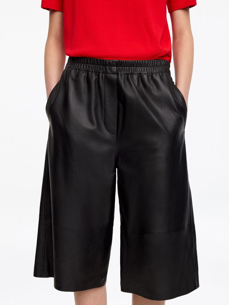 Leather shorts with an elasticated waistband and side pockets. Cut in a regular fit. Pair with a relaxed blazer and a kitten heel for everyday ease.