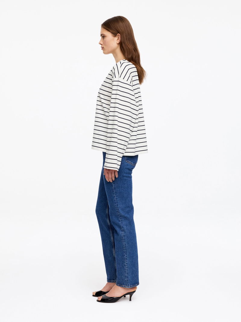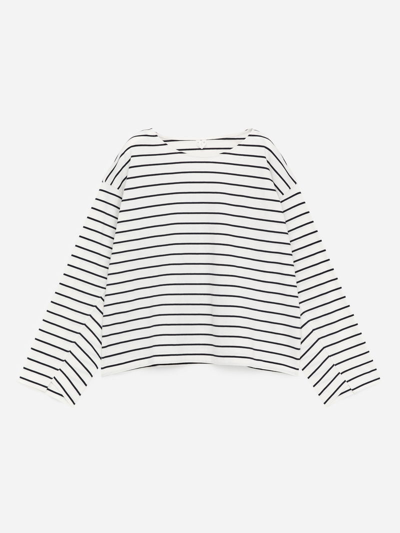 A perfected everyday essential, this long-sleeved T-shirt is crafted from 180 gsm single jersey. It features a clean crew neck, dropped shoulders, and twisted sleeve seams for a subtle point of detail.