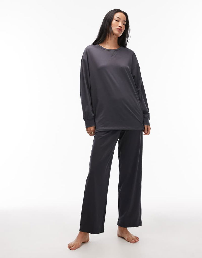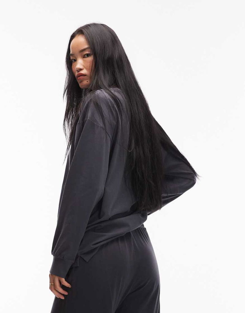 Mix And Match Pure Cotton Lounge Soft Long Sleeve Pyjama Top In Dark Blue